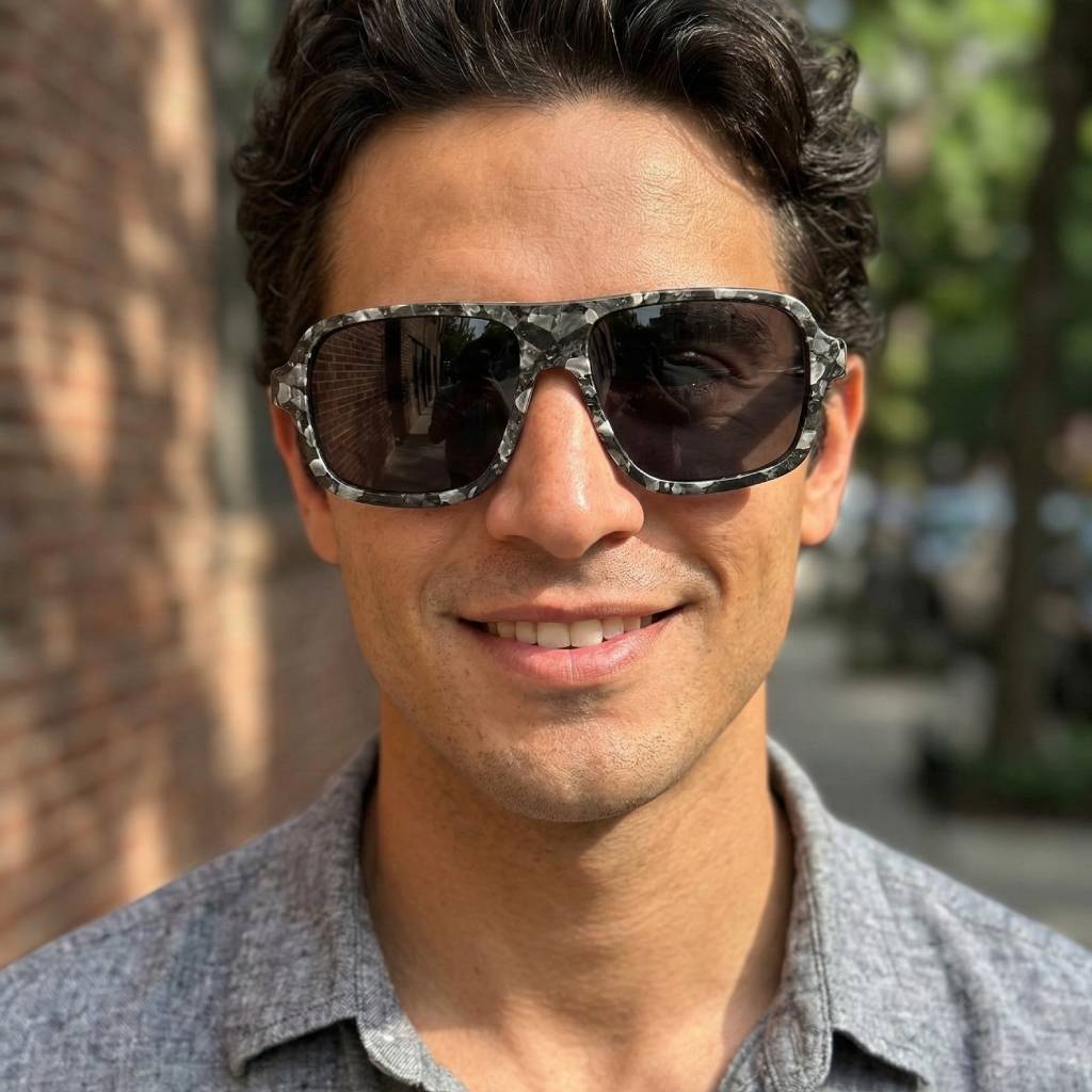 The Abe frame pays homage to the bold eyewear of the 70s and 80s, worn by cultural icons and style visionaries. Leaf Eco’s craftsmen hand-cut and assemble contrasting wood veneers in precise bicolor marquetry patterns, creating depth and visual movement that plastic and metal frames simply cannot replicate. Wearing Abe is choosing art over fashion.