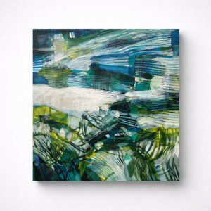 Transform your space with the fluid energy of Brazilian coastal landscapes in this captivating 40x40cm mixed media canvas. Created in 2025, “Campeche” channels oceanic rhythms through layered blues, vibrant greens, and dynamic white strokes—evoking crashing waves, sea foam, and coastal vitality.