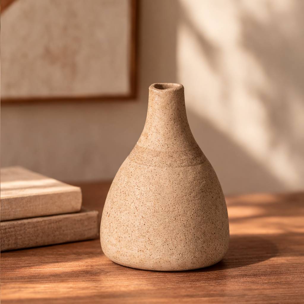 A droplet-shaped bottle crafted with recycled clay flakes for a unique feel.
