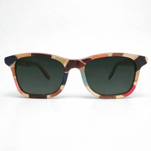 Groove Sunglasses: Leaf Eco’s most versatile model. Contemporary handcrafted wood marquetry, fits all face types. Recycled and reforestation woods, guitar pick accent, personalizable lens and width. Made-to-order. 365-day guarantee.