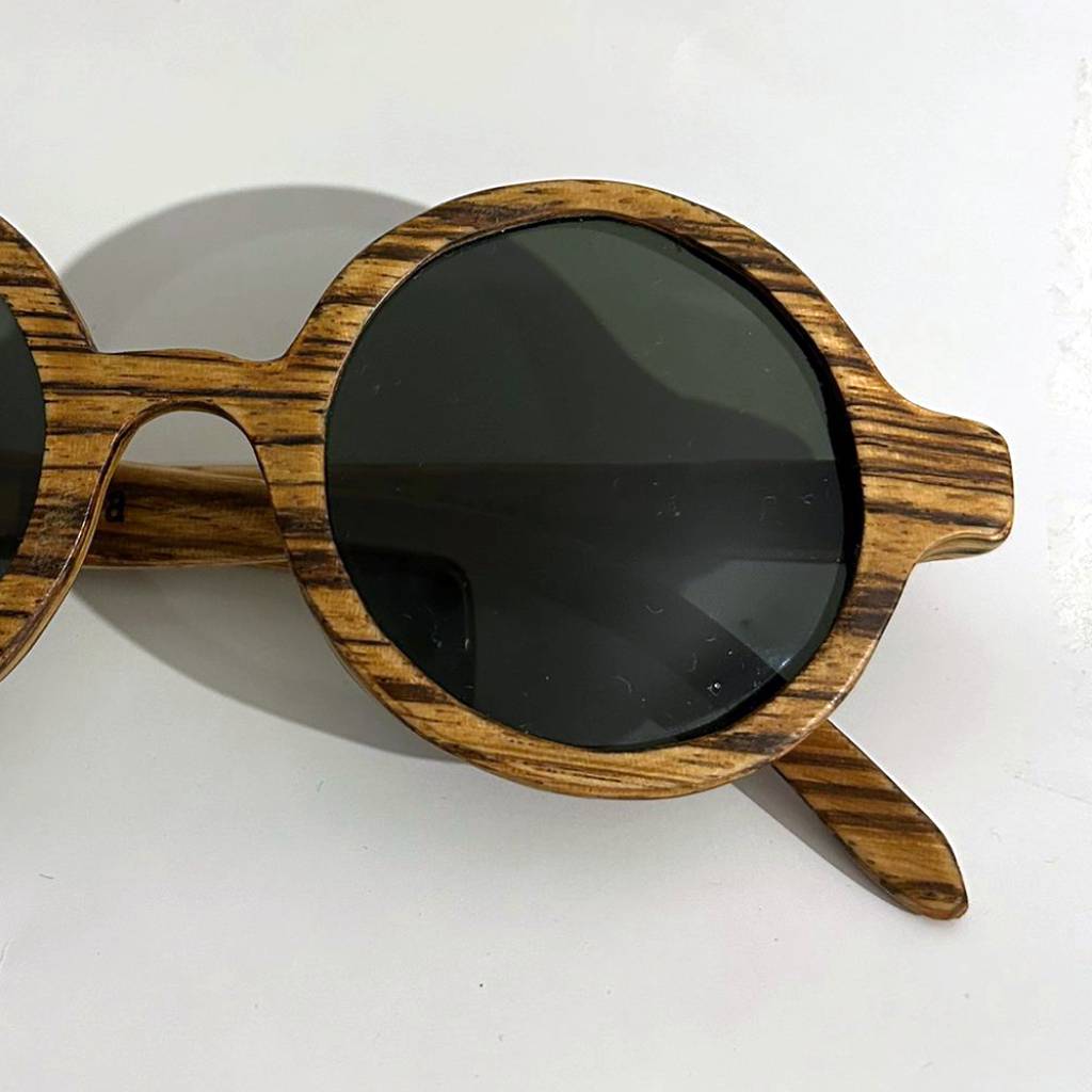 layla round wood sunglasses, Leaf Eco Layla guitar pick eyewear, handcrafted round wooden sunglasses Brazil, sustainable round frame wood glasses, democratic round sunglasses artisan personalizable