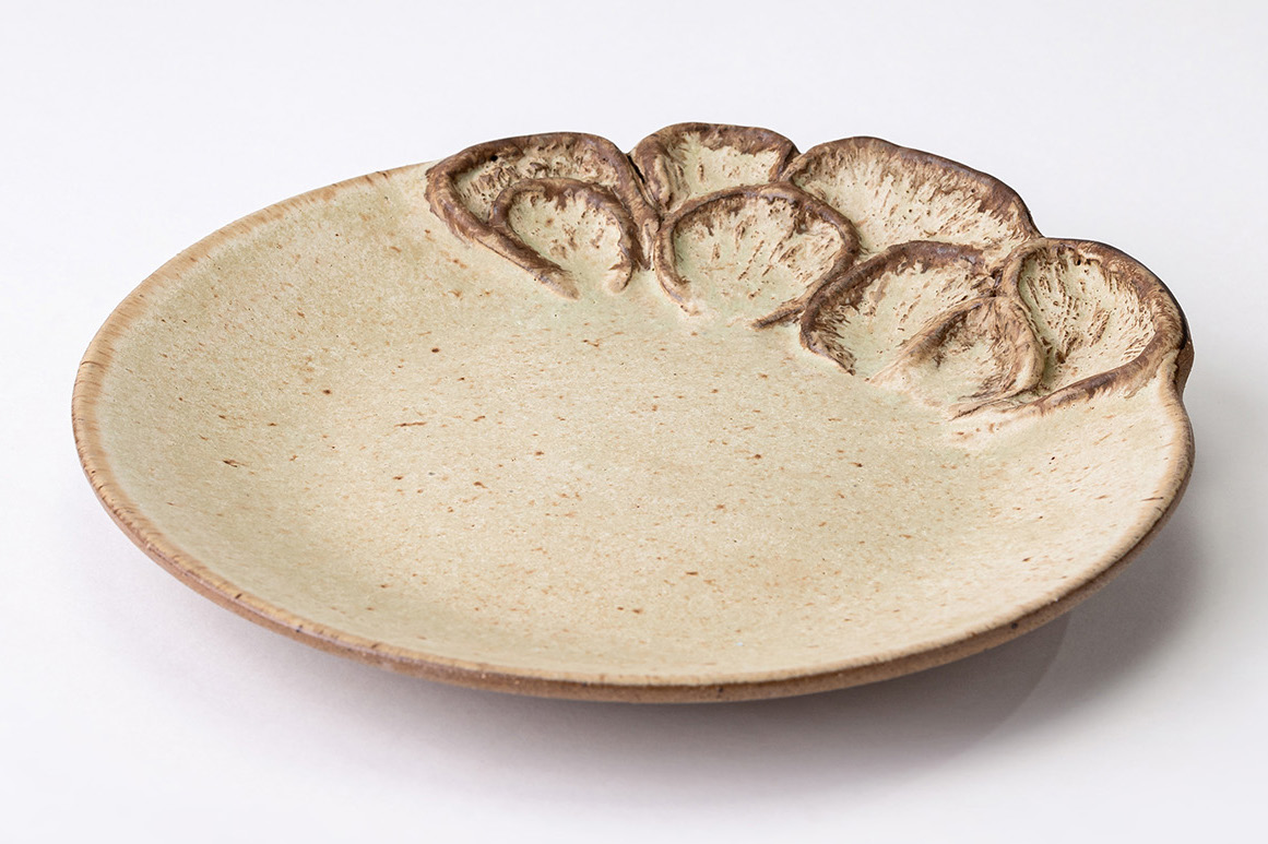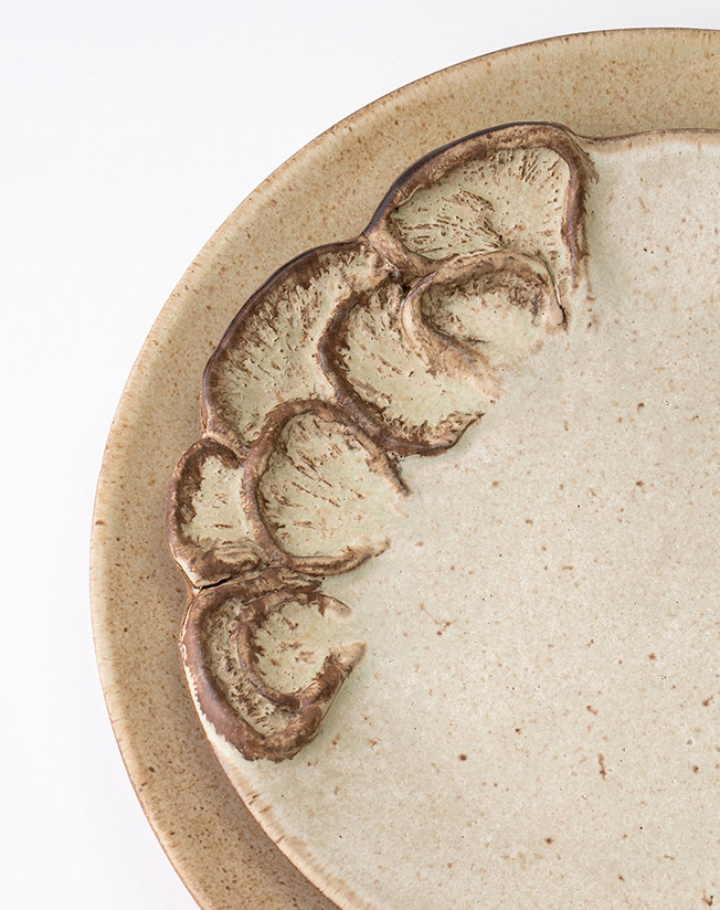 Features delicate relief patterns mimicking underground fungal networks.
